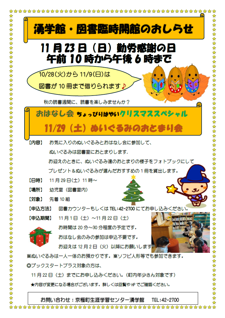 2025-10-31 / 最終更新日時 : 2025-10-31 admin 11月の展示「ハッとする?ホッとする?心が動く本」 芸術の秋、スポーツの秋、食欲の秋など、秋になると夏とは違った楽しみをしたくなりますね。 湧学館では「ハッとする?ホッとする?心が動く本」ということで、 お鍋の本からミステリーの本まで幅広く取り揃えました。 ぜひ普段は読ま […]